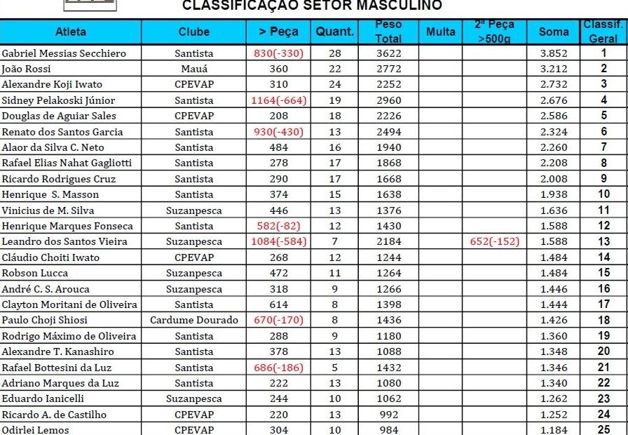 O Clube Santista de Pesca e Lançamento sagrou-se vice-campeão no Campeonato Paulista de Pesca 2025. Recebemos premiações para as melhores classificações. No Acumulado de Pesca categoria Masculino tivemos o Rafael… Continue a ler »Campeonato Paulista de Pesca 2025