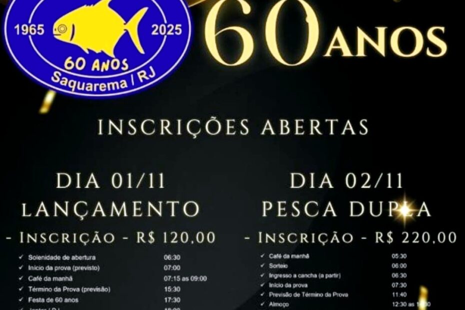 Participamos do torneio em comemoração ao 60° Aniversário do Pampo Clube de Pesca – Pesca e Lançamento, em Saquarema/RJ, nos dias 01 e 02/11/2025. Na prova de lançamento nossos atletas… Continue a ler »60° Aniversário do Pampo Clube de Pesca